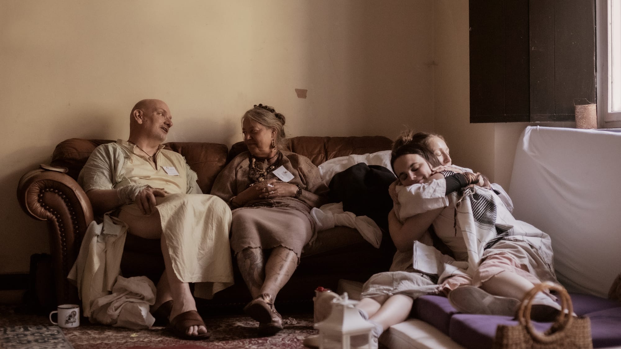 As Mender, I was the closest thing to a doctor we had. Which came into play more deeply when the person playing Fetcher decided to break her leg and arm with a day to go of the larp. We hadn't interacted much - her role was to fetch water from the upper floors. But suddenly I was the default caretaker - setting the break, binding it up, helping her settle and caretaking - and also talking about how her identity was threatened by no longer being able to do her job.