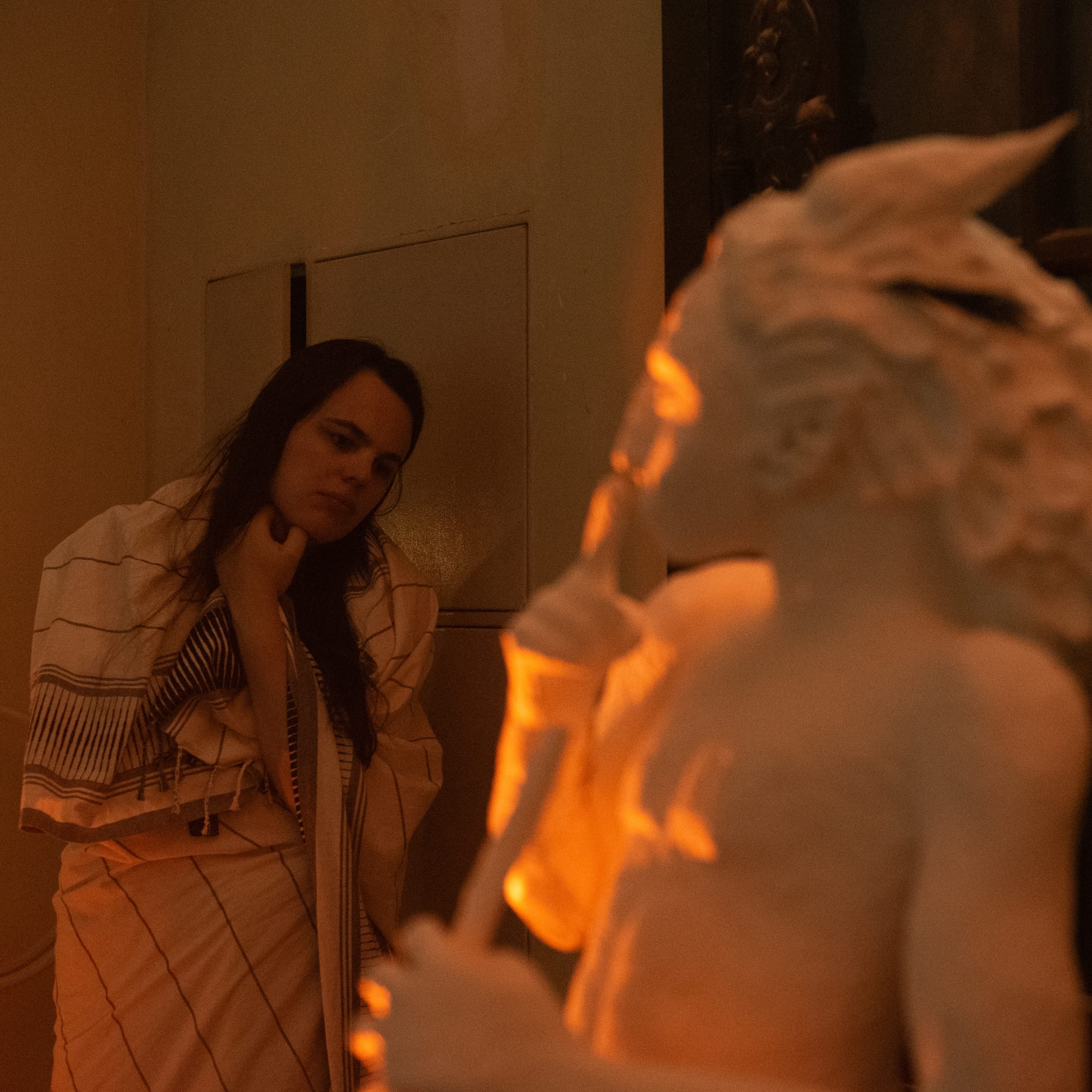 The larp was an adaptation of the book Piranesi, by Susanna Clarke. It's a beautiful book about a man who lives within an endless house – giant halls filled with statues. There are clouds on the upper floors, and oceans in the drowned halls below. The man is filled with a great sense of peace and benevolence, and he has lost all memory of a life outside of it.